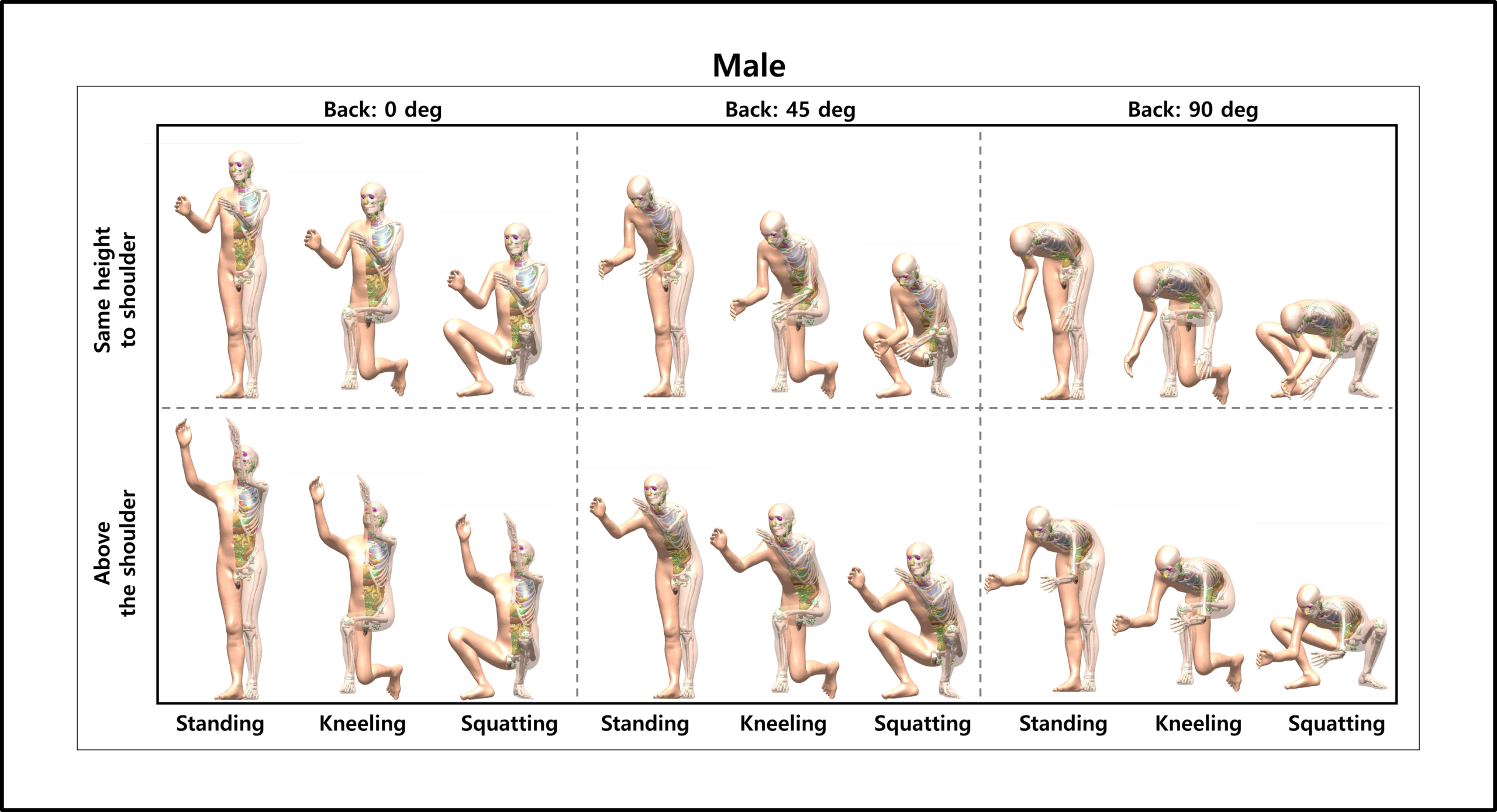 Posture-dependent computational phantoms based on ICRP adult mesh-type reference computational phantoms (MRCPs) (bending, kneeling, sitting, squatting, and walking)